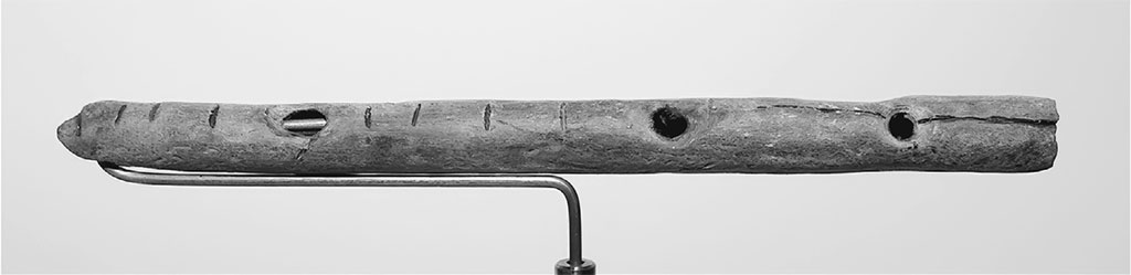 [Закрыть]. Эти возможности включают способность к построению мелодии и темпоральных паттернов: речь идет о мотиве и ритме. Напоследок, в контексте попытки свести миллион лет к одному короткому параграфу, упомянем, что это эпоха масштабных перемещений и миграций, а также изменений климата, во время которых, приблизительно 40 000 лет назад, появляется первое известное нам физическое свидетельство человеческого музицирования. А именно – поразительные и, без сомнения, настоящие музыкальные инструменты.