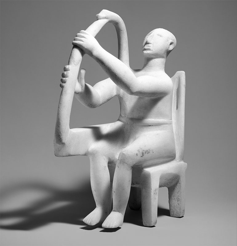 Затем в мгновение ока появляется кикладская цивилизация, существовавшая в третьем тысячелетии до н. э., с ее странными плосколицыми фигурами, играющими на лирах и флейтах. Минойская цивилизация, выкопанная сэром Артуром Эвансом в Кноссе, в середине второго тысячелетия до н. э. распространила лиру и другие инструменты по всему Средиземноморью, в том числе и среди микенских греков. Нет сомнения (несмотря на отсутствие прямых свидетельств), что все важные тексты того времени декламировались нараспев – как эпическая поэзия, так и ритуальный, религиозный текст. Следы напевной прозы, известной как «героический речитатив», можно отыскать и в еврейских псалмах, и у Гомера.