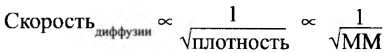 – Скорость диффузии газа обратно пропорциональна квадратному корню из его плотности.