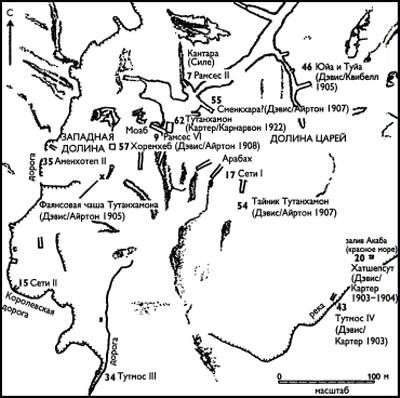 Рис. 6. Долина Царей. Отмечены основные гробницы и места находок.