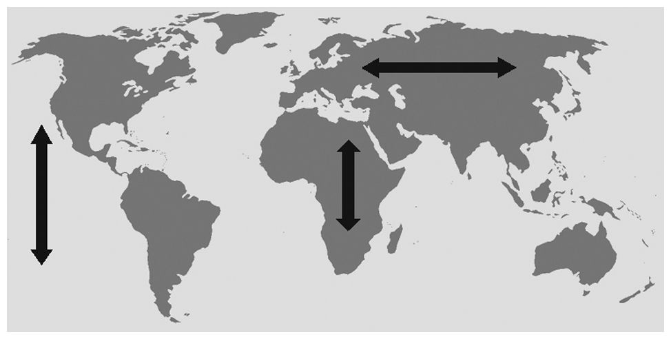 Мигрировать в пределах одного климатического пояса (с востока на запад) было проще, чем двигаться из одной климатической зоны в другую (с севера на юг)