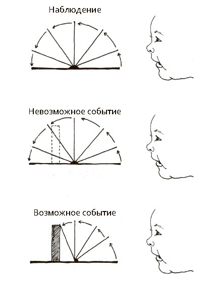 В хорошо известном исследовании ученые ставили перед пятимесячными детьми прямоугольную ширму, которую можно было поворачивать вперед и назад на нижней оси. За ширму помещали маленькую коробку – так, чтобы ее не было видно, – и показывали ребенку два варианта развития событий: ширма либо останавливалась, как будто столкнувшись с преградой, либо продолжала движение, как будто проходя через нее. Наблюдая за этими событиями, взрослый удивился бы во втором случае, но не удивился в первом, и поэтому на второе событие смотрел бы дольше. Младенцы ведут себя так же. Они дольше смотрят на второе событие и, следовательно, во втором случае удивлены, а в первом – нет[50]50