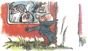 – Я здесь довольно хорошенький, не правда ли? – сказал Муфта. – У меня ещё и волос-то на голове почти нет, а муфта на мне не меховая, а из мягкой фланели.