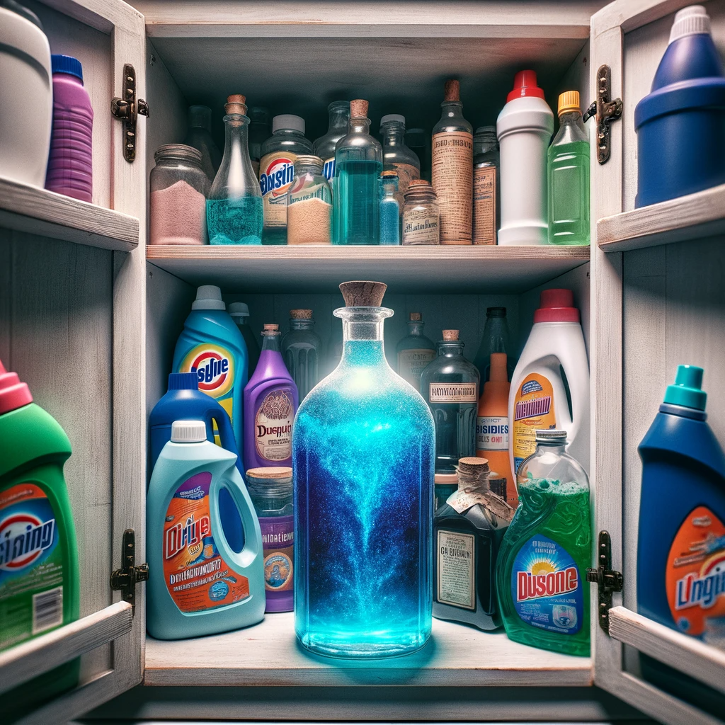 Старушка дергается вперед, но парень, успев схватить бутылку с голубым содержимым, резко отпрыгивает назад и отмахивается умной шваброй, которую случайно нашел у себя под рукой.
