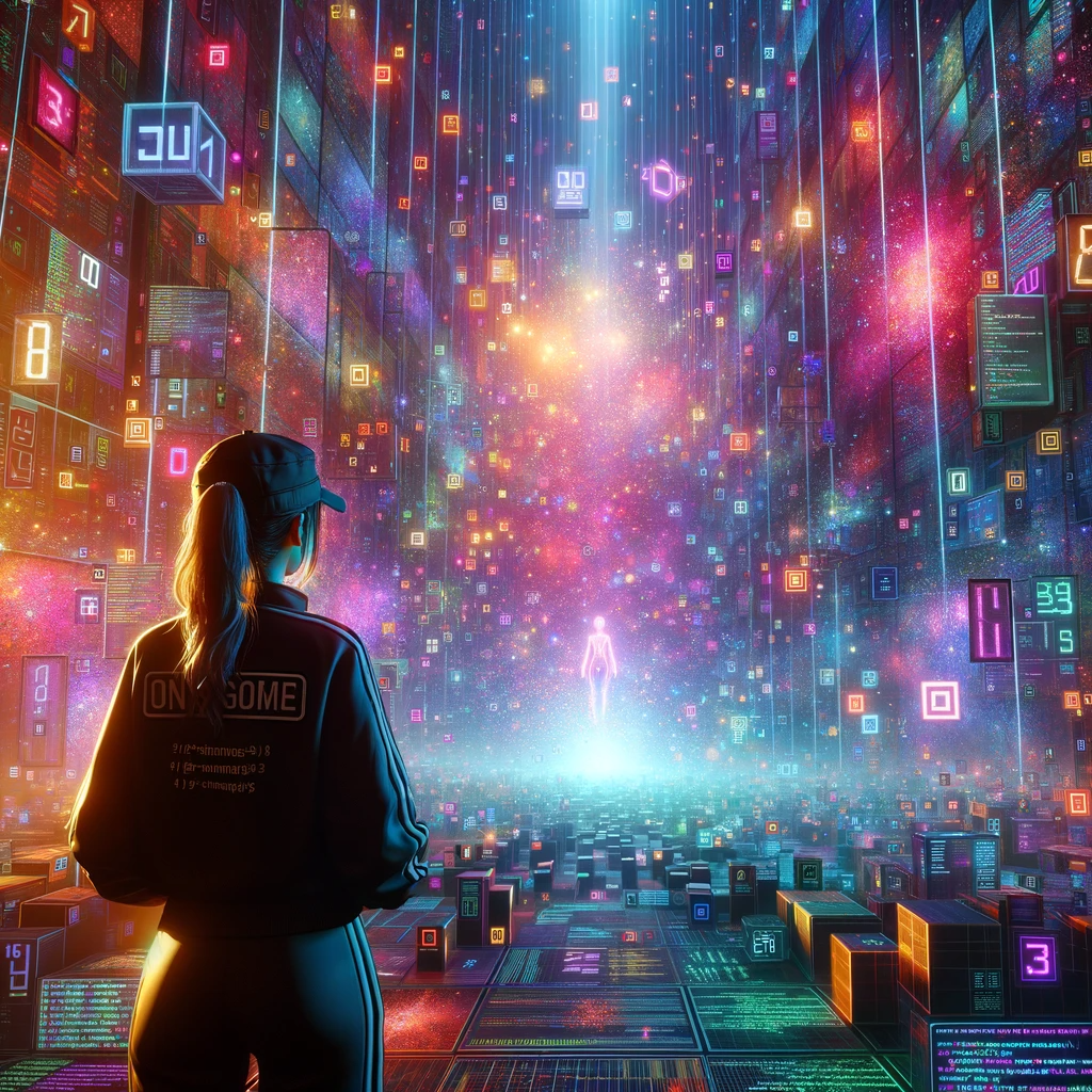 Натали очутилась в мире, где цифры оживали в ярких красках и формах. Мир внутри Аргот-Х был наполнен кодами и алгоритмами, которые визуализировались как волшебная палитра цветов и геометрических фигур.