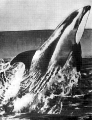 У Джека, который был довольно толстым, спинной плавник и грудные плавники были маленькие, а хвост – мощный, как у кита. Светло-серая окраска на животе переходила в белую. Голова у него была большая, круглая, совсем непохожая на голову дельфина или косатки, которых очень много в водах залива Адмиралтейства. Когда он запаздывал к приходу парохода, с борта которого мы получали почту, мы часто слышали, как пассажиры говорили: „Вот он!“ Я вглядывался в море и видел, как Пелорус Джек несется к нам „на всех парусах“, часто по пути выпрыгивая из воды высоко вверх; свой пробег он заканчивал громким всплеском у самой лодки. Это вызывало восхищение пассажиров».