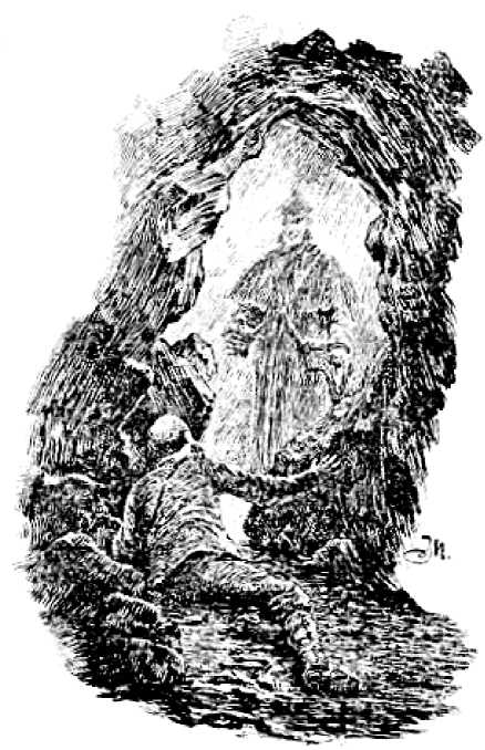 Никогда еще не изведанный им страх обуял его, когда он вспомнил о своих товарищах. Ему казалось, что он теряет сознание. Придя немного в себя, он подумал, что надо спешить к ним на помощь, и начал искать отверстие, через которое он вышел. Но, увы! дождь размыл следы его шагов на песке, и он не мог попасть в подземный туннель.