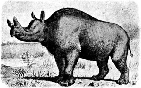 Их заменило жадное и коварное семейство кошек, а также новая группа животных, по строению своему представлявших что-то среднее между собакой, гиеной и медведем, так называемые амфиционы. Появляются также животные, напоминающие куницу и выдру. Неуклюжий безрогий ацератерий, предок носорога, пасся рядом с тапиром и безрогим волом; а на обширных степях гуляли рогатые дикроцеры – первые антилопы и гиппарионы – предки лошадей.