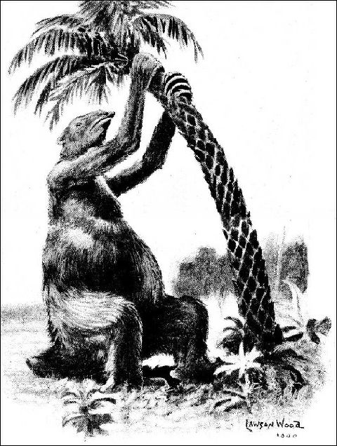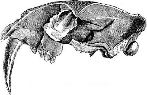 Вдруг Станислав заметил в нескольких шагах от мастодонта растерзанное, относительно небольшое животное. Его сразу трудно было отличить от темной коры пня, на котором оно лежало. Когда путешественники наши подошли к нему ближе, палеонтолог узнал в нем саблезубого тигра, или махайродуса. Эта великолепная кошка с ужасной пастью, из которой сверкали длинные клыки, кривые и острые, как сабля, была буквально искромсана и походила на кусок изрубленного мяса. Очевидно, здесь разыгралась кровавая драма. Сильнейший и крупнейший из хищников, когда-либо существовавших на земле, уверенный в своей ловкости и железной силе мускулов, бросился на одного из мастодонтов. Но он, должно быть, плохо рассчитал свои силы, и ему не удалось уйти от мести разгневанных великанов. Обыкновенно мирные и спокойные, они лицом к лицу с врагом делаются жестокими до неузнаваемости. Тигр убил, правда, одно из самых больших и смышленых животных, но и сам был искромсан в куски.