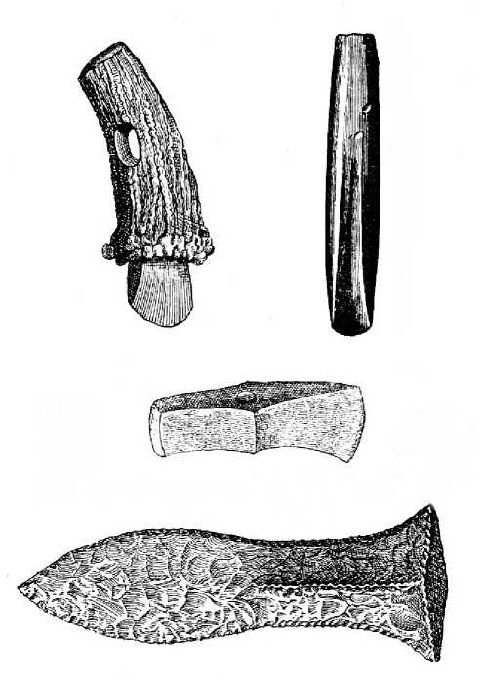 Это были уже пра-прапра-правнуки первых пришельцев. Образ жизни, мышление и обычаи нового племени и старого, представители которого встречались еще кое-где на далеких окраинах, резко различались между собою. Первые европейцы, как мы говорили, вели кочующий образ и жизни, пришельцы – оседлый. Первые жили охотой и не могли даже представить себе, чтобы из земли можно было извлекать какие-либо выгоды; вторые взрыхляли уже землю при помощи кирки, которая может считаться первой «сохой». Первые обладали лишь грубыми каменными орудиями, гнездились в пещерах лишь временами, так как постоянно переходили с места на место; вторые умели шлифовать камни и делали из них топоры, молоты, долота и другие орудия. Они всегда жили в пещерах или землянках и сажали в землю зерна растений, которые они вывезли из своей родной страны. Коренные жители жарили или сушили мясо; они не знали, что значит варить его, не имели понятия о гончарном искусстве. Горячую воду они приготовляли, бросая раскаленные в костре камни в кожаные мешки, наполненные водой. Пришельцы же умели нагревать воду над огнем в сосудах из кожи или коры древесной и в плетенках, облепленных толстым слоем глины. Мало-помалу они убедились, что глина по обжигании становится твердой, как камень. Тогда они научились делать горшки и разные сосуды из одной глины. Ржаные и ячменные колосья они жгли или рубили и осыпавшиеся зерна сушили, крошили на кашу и готовили из них хлеб.