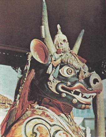 Бог смерти Яма то один, то с близнецовой сестрой Ями пляшет на буйволе, который соединяется с женщиной. «Никогда не стану я соединять тело с твоим телом», – говорится еще в Ригведе (Яма и Ями). Сриматидэви, или Палданлхамо (по-тибетски), скачет на муле, взнузданном зелеными змеями, и седлом ей служит кожа собственного сына, сделавшегося отступником. Варуну несет по водам дракон. Владыка севера Вайсравана, он же индуистский Кубера, восседает на льве Орслане.