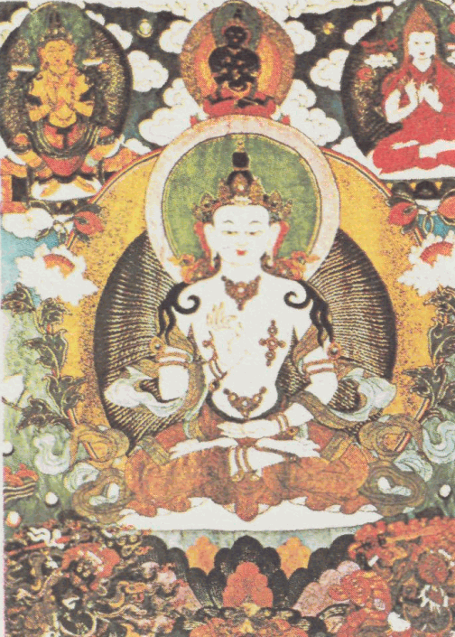 Пропорции тела и раскраска богов, их атрибуты, позы, число голов, глаз, рук, даже выражение лиц – все это раз навсегда определено и не подлежит изменениям. Лишь изображения учителей и монахов не столь строго канонизированы. Здесь еще возможны различные вариации.