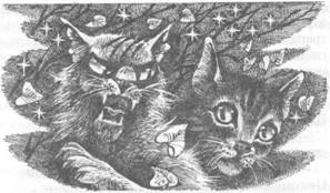 Но прежде чем он успел проснуться, послышалось громкое кошачье сопение, и тощая серая кошка выскочила из колючих кустов, с трудом переводя дыхание.
