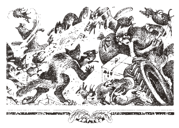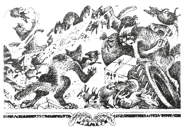 Согласно первоначальному плану Хлыста на каждую крысу должно было приходиться по двое котов, но в действительности крыс оказалось гораздо больше, и они были слишком проворны, чтобы справиться с ними вдвоем.
