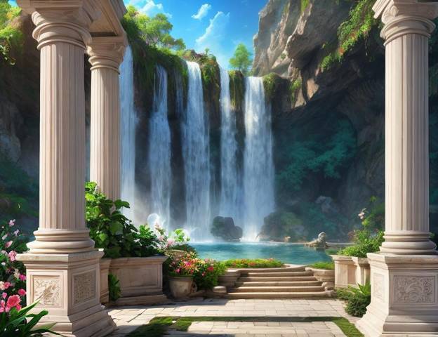 Вспыхнул яркий свет и раздался шум, пришедший мгновенно и громко. Скорее не шум, а грохот… Через несколько мгновений я понял, что это грохот падающей воды. Я повернулся и увидел: дальний простенок растворился, открывая дорогу в место, которое не могло существовать в Москве и близких окрестностях столицы. Справа с высокой скалы с шумом срывался водопад, наполняя небольшое озеро с чистейшей бирюзовой водой. С другой стороны от водоема начиналась дорожка взбиравшаяся на кручу. И там дальше между деревьев и кустов проступал мраморный дворец с величественными колоннами и золотыми рельефами.