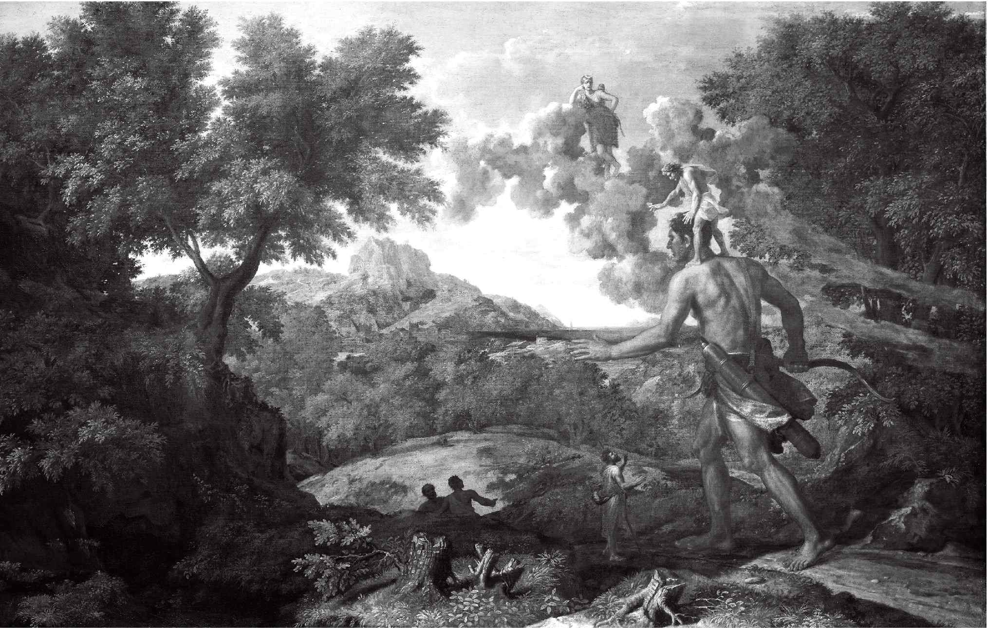 Читая отрывок из Наталиса Комеса можно не сомневаться, что он буквально описывает подход Пуссена к созданию мифологического пейзажа. Художник, подобный Пуссену, мог взять аллегорическое прочтение мифа как дополнение к лукиановскому экфрасису, только если принимал весь подход целиком. Он тоже воспринимал древний рассказ о колдовстве и насилии как завуалированный эзотерической «иероглиф» меняющихся природных явлений. Таким образом, пейзаж обозначал для него много больше, чем просто сцену для странного и живописного действия. Глубинное значение поднимает пейзаж над сферой реалистического ландшафта или грез об Аркадии – напитанный значением мифа, он стал видением и аллегорией самой Природы.