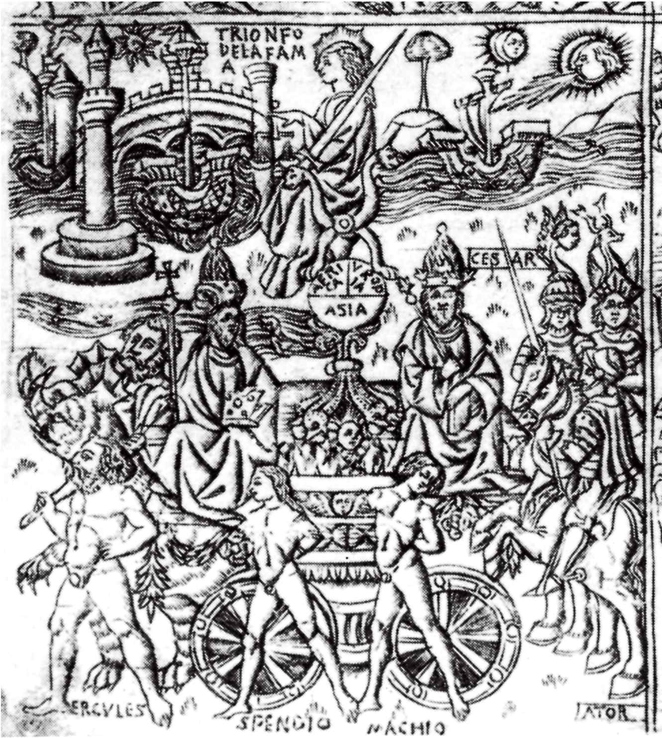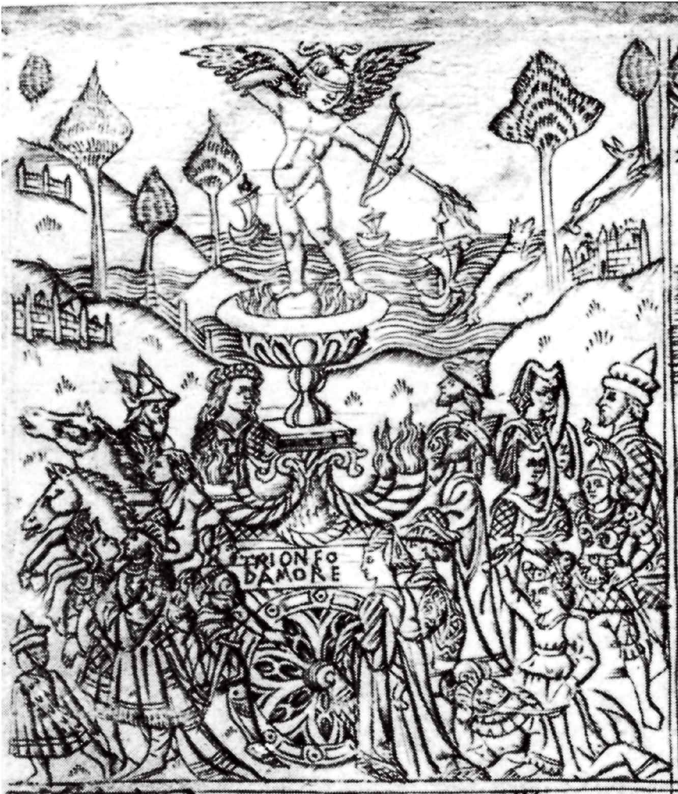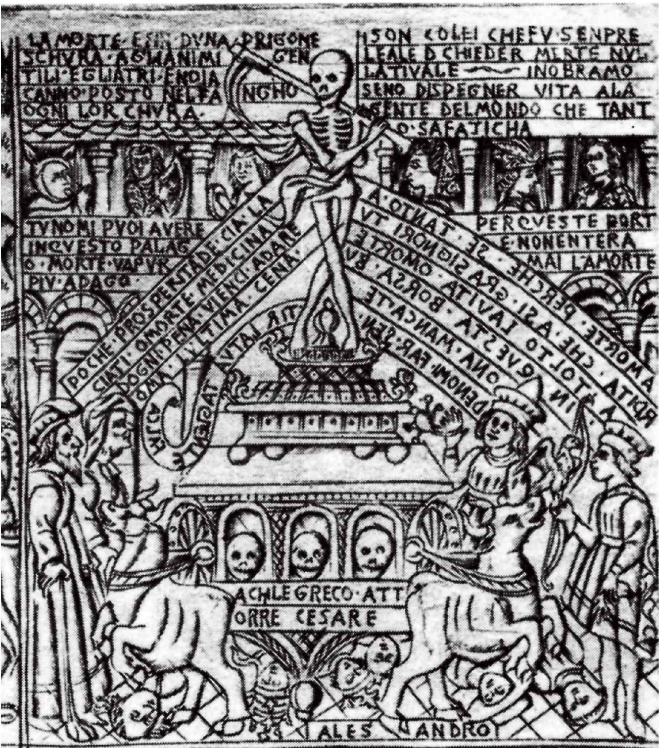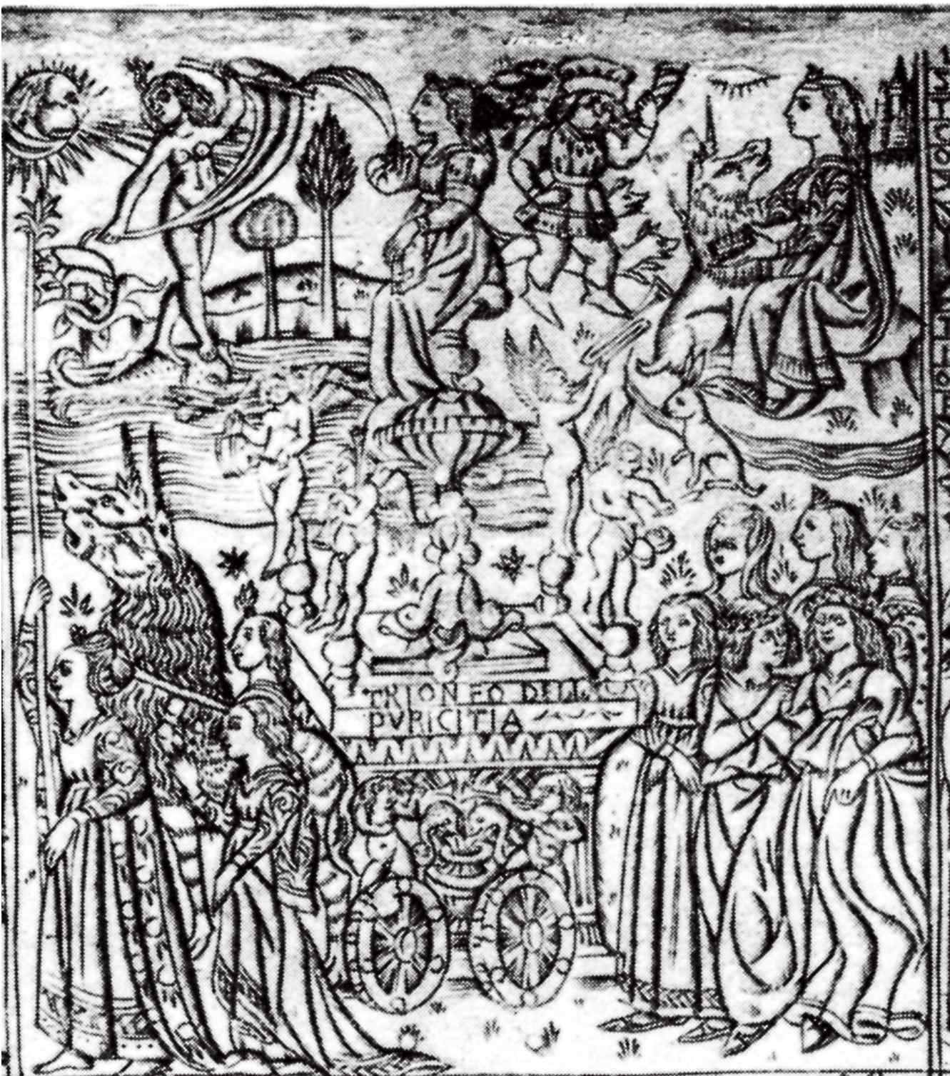 Шесть побед Петрарки (Любовь, Целомудрие, Смерть, Слава, Время, Божественность). Флорентийская гравюра 15-го века. Лондон, Британский музей
