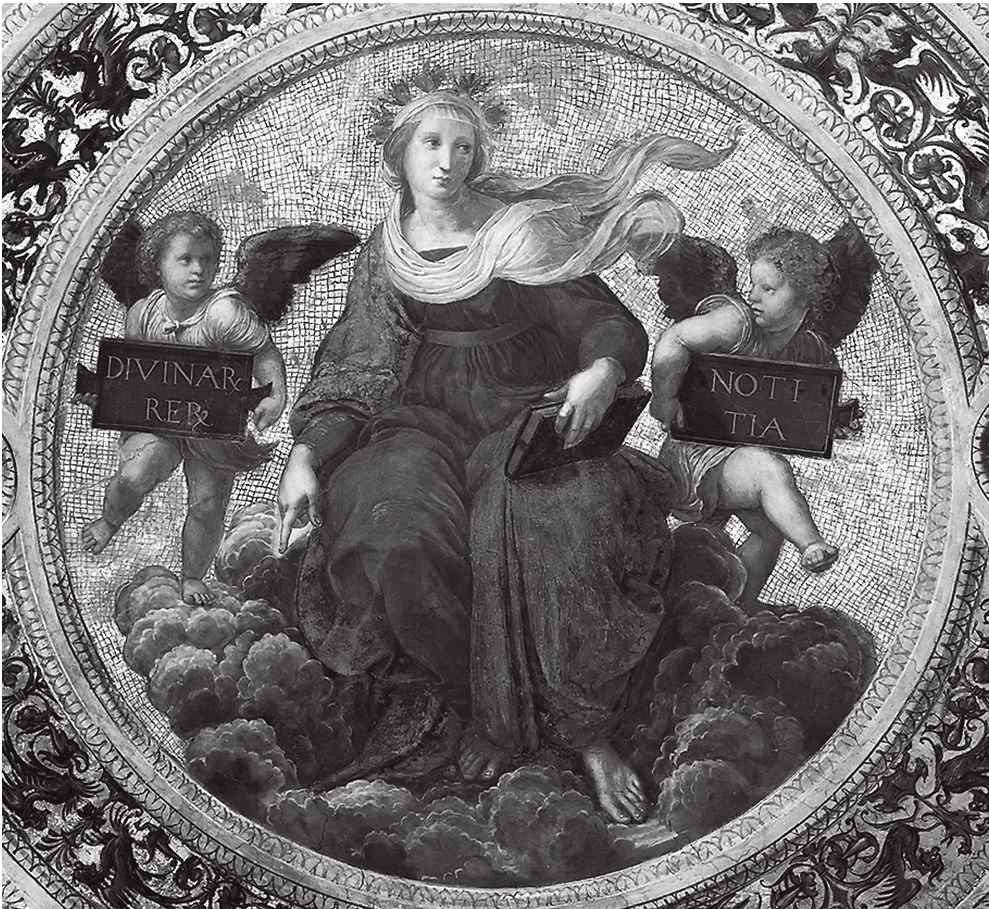 То, что на фресках Станцы делла Сеньятура открыто свыше, – а именно, что знание и добродетель суть проявления Божества – показано в надписях по бокам персонификаций.