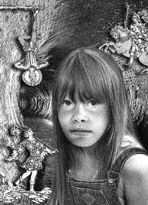 Монолог следовал за монологом. Правда, Тата нас почти не слышала (хотя «ее» карта, Королева Жезлов, и впрямь нравилась ей чрезвычайно). Она рассматривала старинные платья наших женщин, особенно, конечно, платье Хозяйки, гладила розовым пальцем нарисованные розы и лилии у ног Магуса, трогала ногтем огромный, как луна, бледно-желтый Туз Динариев и всматривалась в молодые лица пажей, пытаясь рассмотреть в них черты знакомых мальчиков.