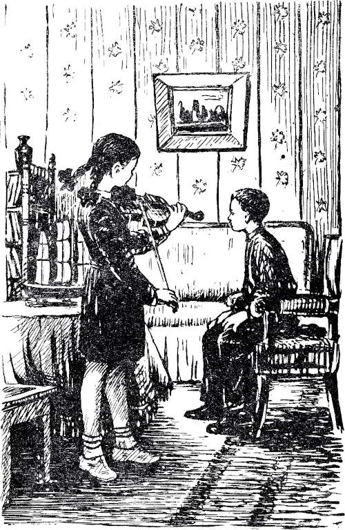 И, держа скрипку у плеча, она осторожно и как будто несмело опустила на нее смычок. Тихий и робкий звук, словно чей-то живой вздох, разнесся по комнате. Он вырастал, разливался, чистый и прекрасный, и Коля, уже не чувствуя больше неудобств дедушкиного кресла, словно перестал дышать. Он только удивлялся, неужели это Катька, та самая девчонка, которая сидите ним за одной партой? Он смотрел на ее смешные, косички, и радость, неизвестно откуда нахлынувшая, и желание быть хорошим все больше наполняли его…