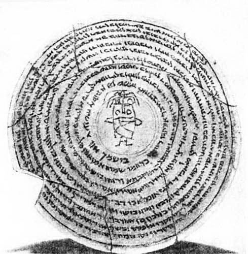 И эта глиняная чаша служила когда-то для заклинаний, так как на ее внутренней поверхности написан арамейский магический текст. II в. до н. э. Диаметр 18,2 см