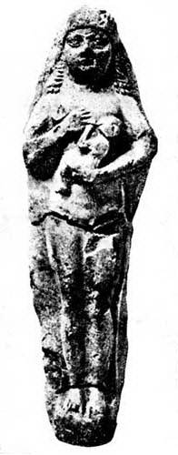 Такие глиняные фигурки изготовлялись тысячами в формах и продавались населению обычно в связи с религиозными праздниками. Середина I тысячелетия до н. э. Высота 6,6 см