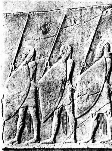 Хотя вавилонские цари часто вели войны и завоевывали многие страны, они, в отличие от правителей Ассирии, почти ничего не сообщают об этом в своих надписях. Мы не знаем ни о численности их войск, ни о количестве захваченных пленных. В сообщениях ассирийских царей, которые можно привлечь для сравнения, говорилось о численности войска в одной из провинций, что оно состояло из 30 тысяч лучников и 30 тысяч щито– и копьеносцев. Общая численность войска должна была быть соответственно во много раз большей. Надо прибавить к этим цифрам и многочисленный вспомогательный персонал, например людей, обслуживавших обоз, прислугу при колесницах, поваров, денщиков и т. д. Насколько эти данные соответствуют действительности, не являются ли они преувеличенными, сказать трудно.