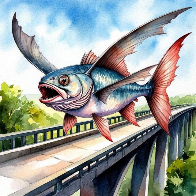 – Внимание! – выкрикнул Тинголов, и над эстакадой с шумом, роняя водные брызги, взмыла в воздух стая из шести или семи зубастых летучих рыб.