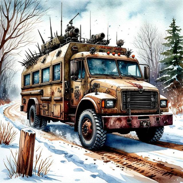 Обещанным транспортом оказался электробус самого эпичного вида: кустарно наваренные листы брони, шипы, колючая проволока, пулемет и огнемет на крыше в полубашенках, решетки на окнах… Людвиг Аронович точно бы одобрил! Пассажиров туда набилось плотно, по большей части все они были суровыми людьми, до зубов вооруженными и малоразговорчивыми.