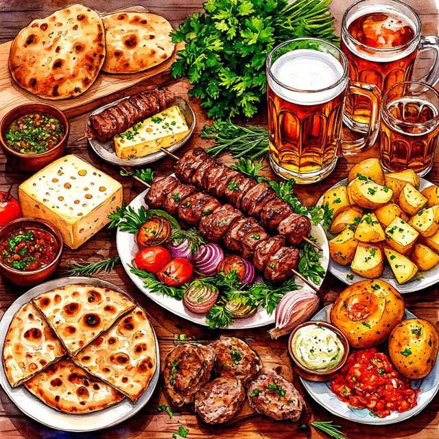 Уруки расстарались там вовсю, стол просто ломился от вкусностей! Шаурму не крутили, а вот шашлык, лаваш, куча невесть откуда взявшейся свежей зелени, сыр – овечий, козий и обычный, коровий, печеная картошка, овощи на гриле и прочее – простое и вкусное, вкупе с огромными кувшинами холодного пива и кваса, и горячего взвара – вот это вот все было в невероятном изобилии. Ну, мы так думали, пока Лурц с Варганом жрать не начали. Уруки вообще постоянно жрут, как в последний раз, со страшной силой.