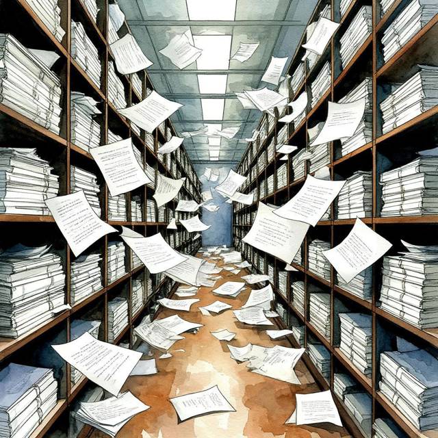 Я увидел покосившиеся ряды этажерок с папками – точь-в-точь такими же, как лежала у меня в рюкзаке – и с коробками, как в фильмах про полицейских, где улики хранят. И чертову кучу бумаг, которые летали в воздухе, валялись на полу, шурша у нас под ногами. А еще – здесь не работала почти половина ламп, люминесцентные светильники мигали и дребезжали. И воздух был спертый.