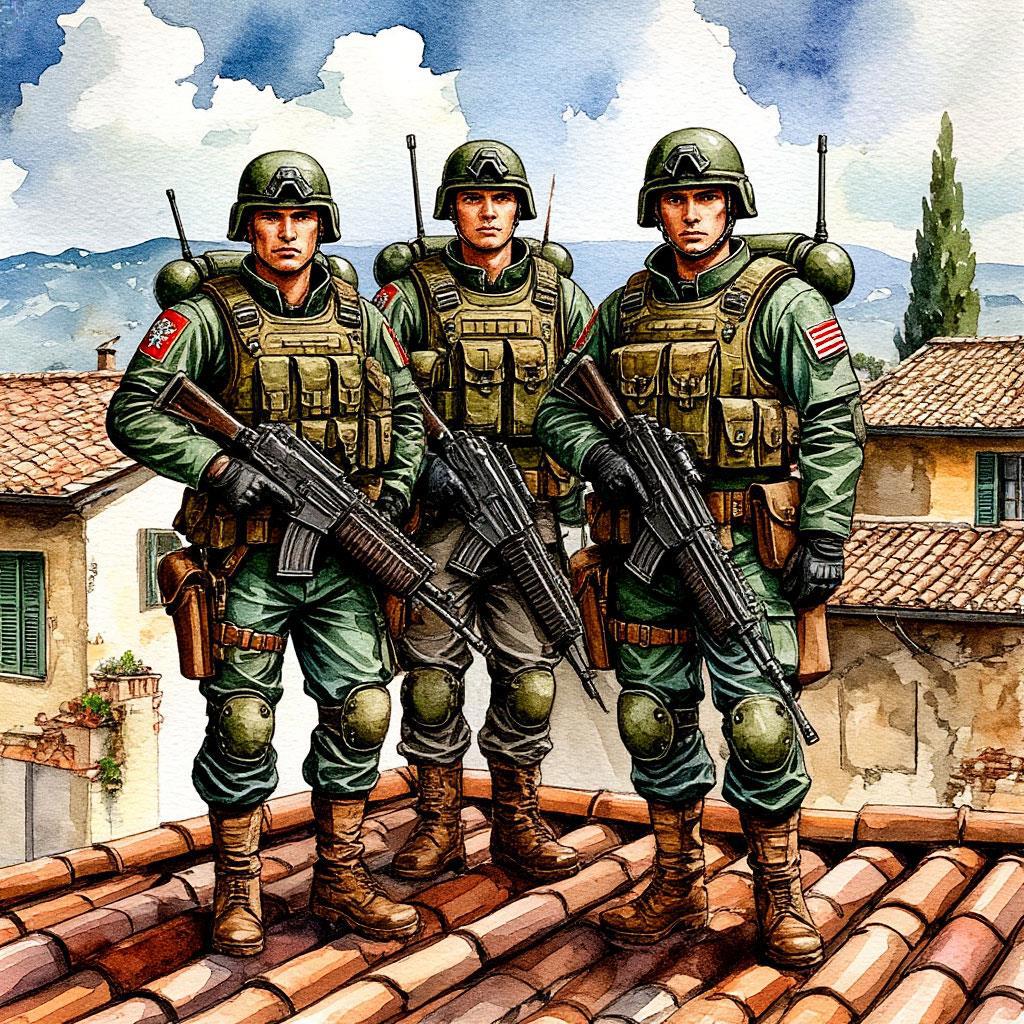 Посреди яростного сражения дворник подметал крыльцо дома, работали кафе и магазины, на террасах мужчины и женщины в яркой одежде пили кофе, отдыхали, общались, будто и не идут вокруг них боевые действия. Рабочие в подвесной люльке ремонтировали фасад здания, ехала парочка велосипедистов по тротуару, старательно огибая ведущих огонь солдат, которые были совершенно сбиты с толку таким поведением.