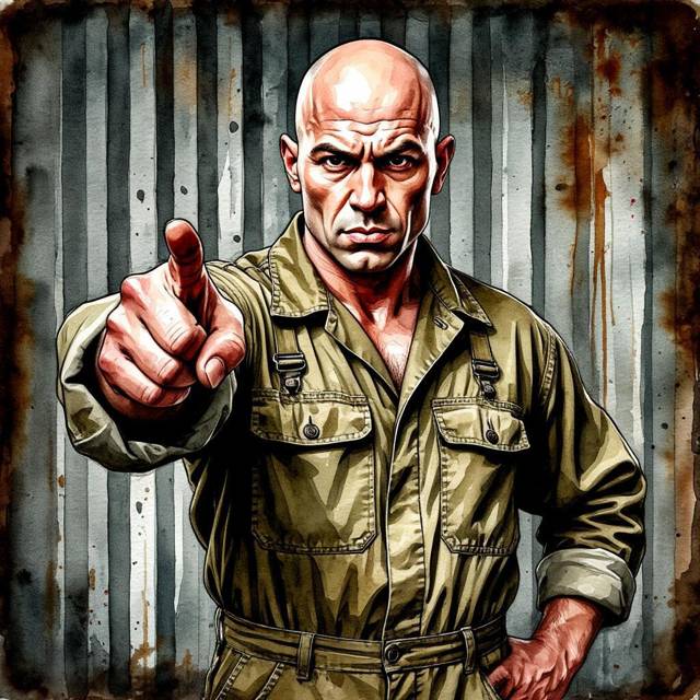 Я, честно говоря, сильно удивился, и на автомате навел объектив на источник звука – и сфоткал, чисто от неожиданности, этого вальяжного лысого мужика. Фактурный, кстати, дядька. Тот самый, с «блатной грацией». В отличие от большинства рекрутов, он выглядел, как и я – на тридцатку, даже чуть старше. Принципиальная позиция? Или экономит выданные в кредит годы?