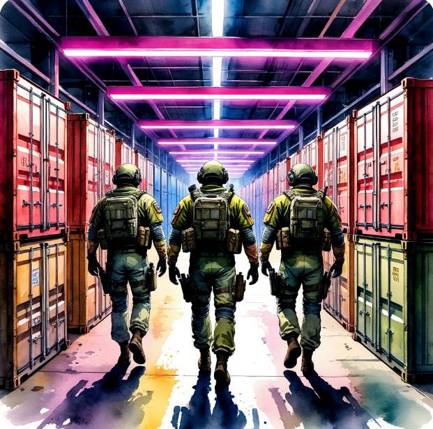 Все как в первой симуляции, разве что снаряжение теперь сидело гораздо более прилично, чем в виртуалке, и шлейки можно было подтянуть заранее. Из карантинной зоны нас в полном облачении провели по коридорам все в тот же десантный трюм, где стояли контейнеры. Экипаж БДК и легионеры-штурмовики выглядывали из дверей и посмеивались. Наверное, выглядели мы по-идиотски, хотя сами себе казались великими воинами.