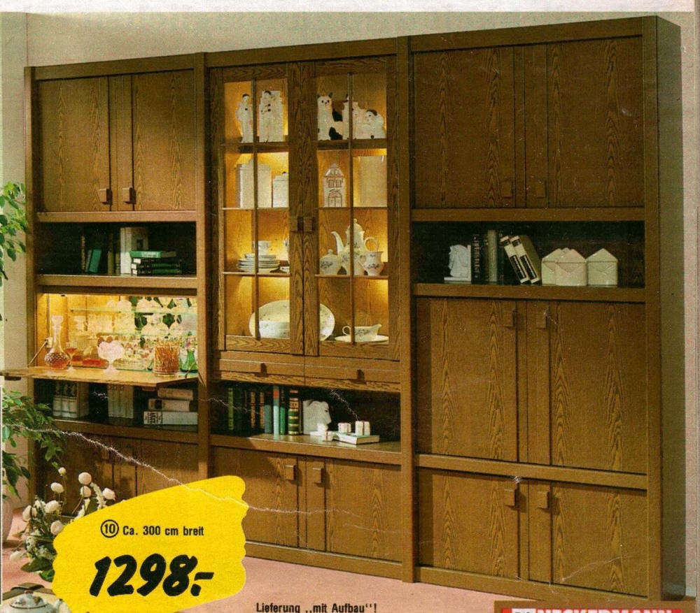 Мы поднялись на эскалаторе ещё на один этаж, и тут уже у меня возникло ощущение, что я попал в коридоры Икеа. В основном стандартная мебель, собранная из панелей, сделанные под разные породы дерева – орех, дуб, вяз. Различие в отделке, фурнитуре – латунные ручки, декоративные вставки. Но Брутцер потащил меня куда-то в самый конец. И тут я узрел совершенно необычный гарнитур-стенку. В центре за стеклом были выставлен не хрусталь, как в советских домах, а фарфоровые фигурки.
