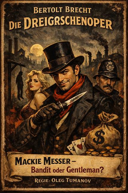 – Уже успели напечатать? – я удивлённо развернул трубочку, увидев красочный рисунок хитро улыбающегося Мэкхита с ножом, виселицу на заднем плане, констебля, и надпись внизу заставила теплом залить душу: «Regie: Oleg Tumanov». – Очень здорово. Я просто вам по гроб жизни обязан, Эльза.