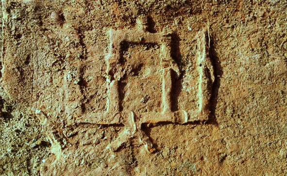 Кирпич из гродненского замка Витовта с геральдическим знаком Колюмны.