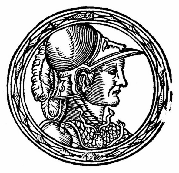 Монета Пскова. Считается, что на ней изображён князь Довмонт.