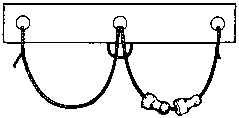 Дужка с колечками на концах; в эти колечки пропущен стержень, концы которого тоже загнуты кольцами, чтобы он не выпадал и не вынимался из дужки. А на стержне внутри дужки висит затейливая фигура. Как же снять ее, не разгибая колечек, не разгибая этой фигуры?