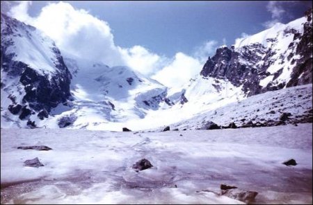 Перевал Гарваш и плато ледника.