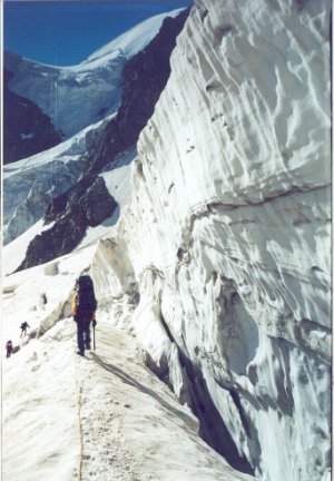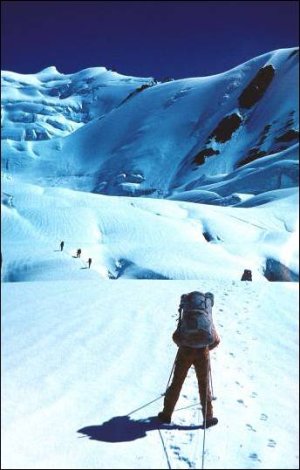 В походах я встречал группы с очень разным отношениям к ледовым разрывам: от откровенно боязливого до опасно-пренебрежительного. Обычно у групп со средним уровнем подготовки отношение вполне нормальное, уважительное и спокойное. А вот у некоторых достаточно искушенных групп, прошедших не один сложный ледопад, наблюдалась явная недооценка опасности «ровного», закрытого ледничка. Заметьте, при хороших знаниях об этой опасности…