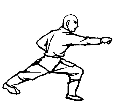 1. «Ребенок покланяется Будде» – удар кулаком снизу вверх в подбородок соперника одной рукой с одновременным блоком ладонью другой руки на уровне груди из стойки сюйбу.