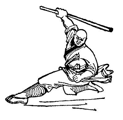 Первым оружием монахов становится их неразлучный спутник – монашеский посох, изготавливаемый обычно из твердого и тяжелого дерева. Как гласят шаолиньские архивы, первоначально все приемы были объединены в один комплекс, называемый «18 приемов архатов», включающий в себя несколько захватов, освобождение от них, удары кулаками, ладонями, подсечки и невысокие удары ногами. Легенды приписывают создание этого комплекса Бодхидхарме – человеку, чье имя вошло в историю китайских боевых искусств неразрывно с монастырем Шаолинь.