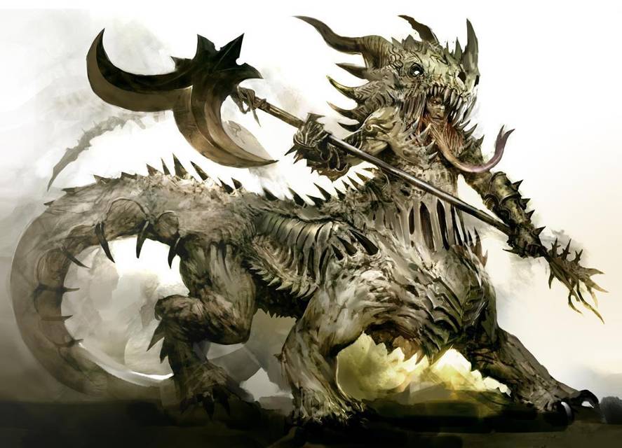 Высоченный демон чем-то напоминает Вастая и уродливого дракона одновременно. Из четырехлапый туши с длинным хвостом вырастает почти человеческий торс. Огромная пасть скалится в плотоядной ухмылке, обнажив ряды острейших клыков. На массивной голове вздымаются огромные рога, а мускулистые руки сжимают огромный топор.