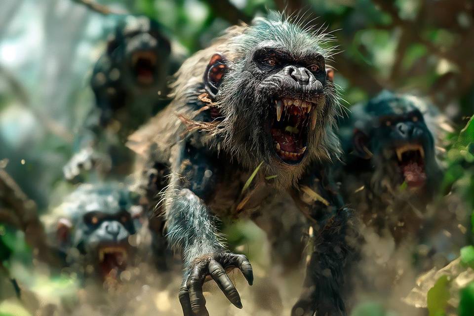 И, скорее всего, монстров я тоже увидел первым. До сих пор неясная тряска листвы наконец прояснилась, и на край поляны выскочила первая группа «демонов». Очень похожи на обезьян, этаких древолазов-переростков, но как-то сразу стало понятно, почему их называли демонами.