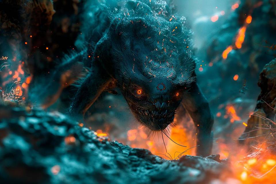 Я моргнул, отгоняя мысль, что передо мной какое-то дьявольское отродье, пришедшее к нам сразу из жаркого ада. Очень уж казалось, что существо, сделано из магмы и является каким-нибудь духом вулкана. Глаза горели красным огнём, а по бугристой шкуре тянулись красные прожилки, будто оттуда вытекает лава.