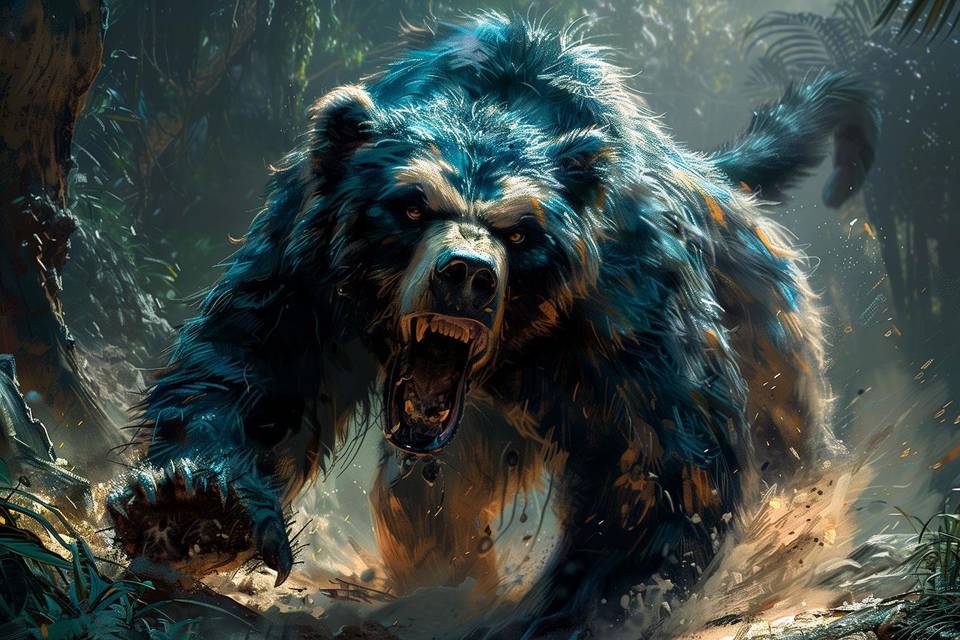 А вот медведи были. Чуть в сторонке от лагеря собрали несколько клеток из крепких брусьев, в которых я насчитал четырёх крупных монстров из отряда хищников, а род, скорее всего, – очковые медведи, согрешившие с кем-то из крупных обезьян. Правда, по одному виду было понятно, что эти не очканут. Морда и окрас на ней были довольно характерными для медведей, но пропорции тела и осанка намекали на кого-то гориллоподобного. Плюс полутораметровый хвост.