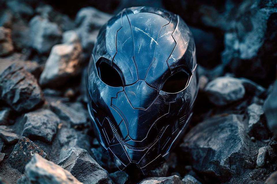 Шаловливые ручки сами потянулись к голове с остатками корпуса. Я скинул лишние осколки и развернул маску на себя. Овальная, с небольшим расширением в районе скул и узким подбородком. Глаза, сделанные из чёрного непрозрачного стекла, похожего на обсидиан, были миндалевидной формы и расположены под углом. Словно это какое-то насекомое, да и форма явно была вдохновлена кем-то из мира братьев наших меньших. Клыков, жвал или ещё каких-то кусачих атрибутов не было, но на месте предполагаемого рта шла линия-улыбка, похожая на фильтрующую решётку для забора воздуха.