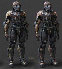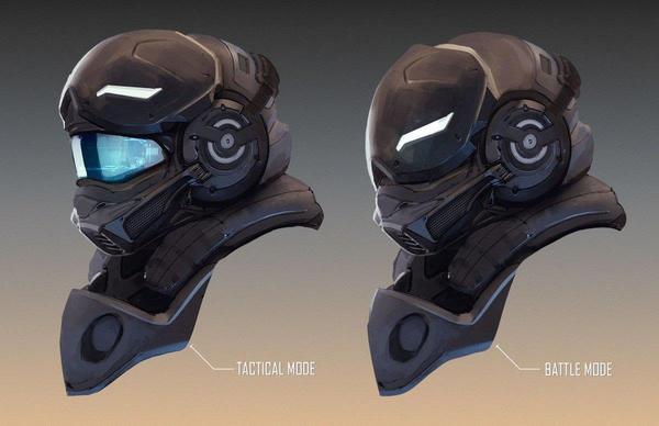 Также я заканчивал разработку шлема, берущего на себя функции тактической карты и вывода всей информации на дисплей встроенного в него визора, тем самым облегчая мне управление всей броней. Дизайн был вдохновлен защитными костюмами спецназа Макс-Так, который я немного изменил, делая шлем более защищённым и технологически продвинутым.