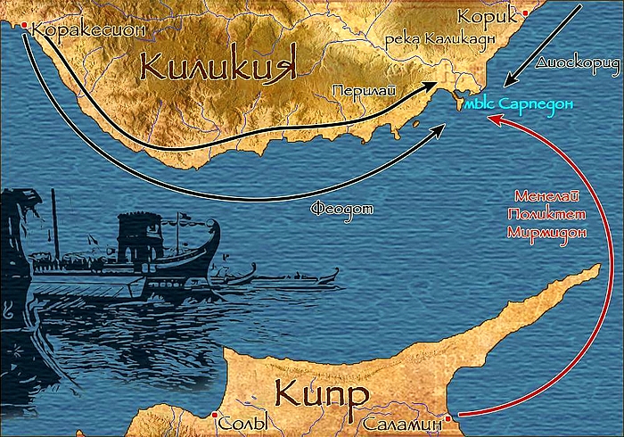 Отсюда ей хорошо было видно столкновение кораблей Поликтета и Гегесиппа. И явление отряда Диоскорида она тоже увидела одной из первых.